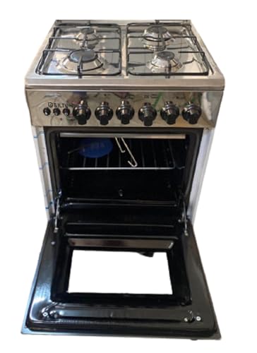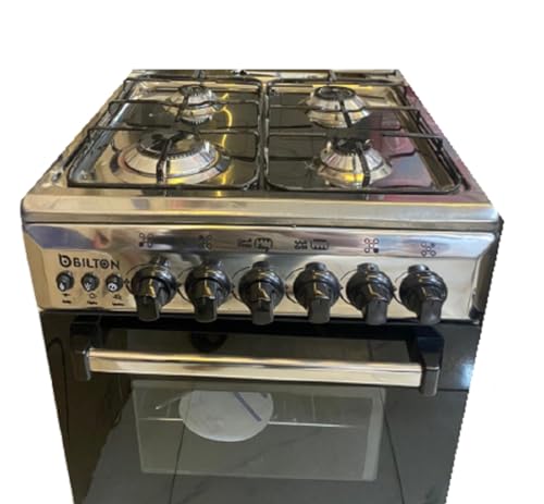 BILTON - نموذج سمايل من بيلتون، عرض 55 سم، ستانلس ستيل بالكامل، مع 4 شعلات نحاسية، اشعال ذاتي، شواية ومصباح