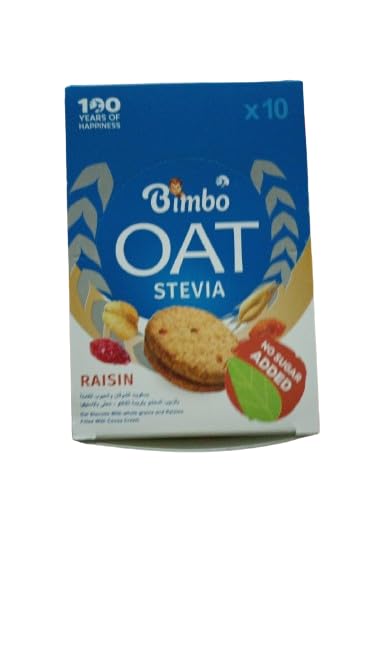 - بيمبو شوفان ستيفيا مع بسكويت الزبيب بدون سكر مجموعة من 10 قطع