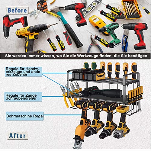 - موفر للمساحة: يتميز حامل الأدوات بتصميم فريد من نوعه من ثلاث طبقات، يمكنه حمل ما لا يقل عن 5 أدوات ثقيلة وملحقات أدوات مختلفة. يستخدم التصميم المثبت على الحائط بشكل مثالي المساحة المهدرة على الحائط، حتى تتمكن من العثور على أدواتك بسرعة وإنجاز عملك بشكل أسرع!