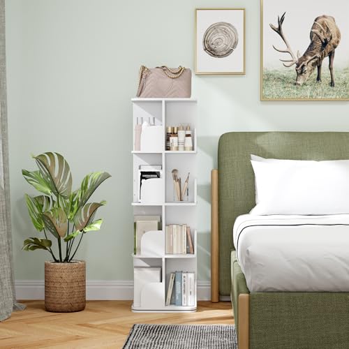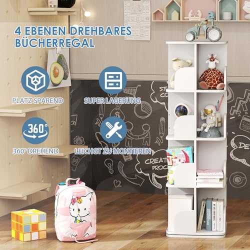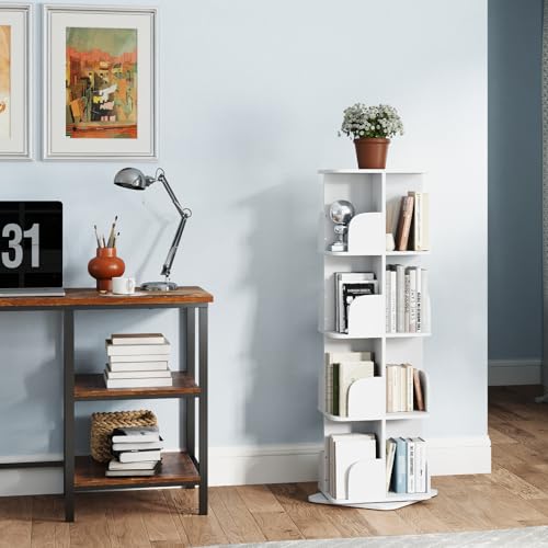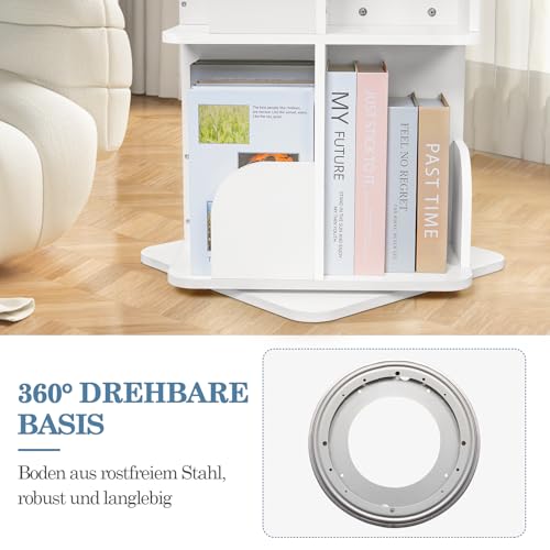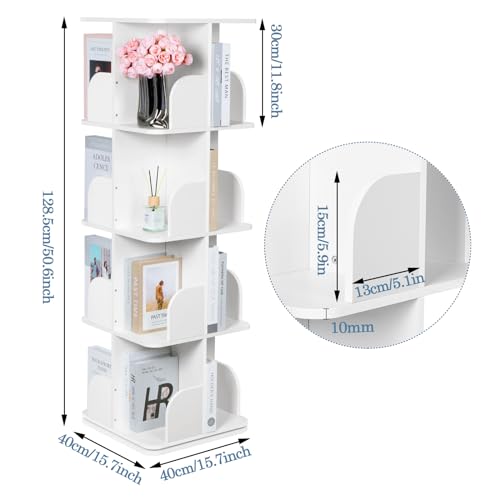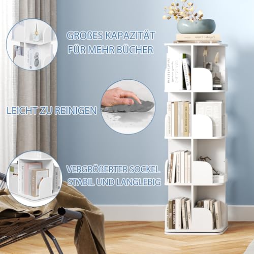 bimiti - خزانة كتب دوارة من 4 طبقات، رف خشبي، 360 درجة، تخزين للكتب/CD/DVD، للاطفال والكبار، مربع، ابيض