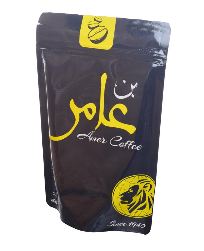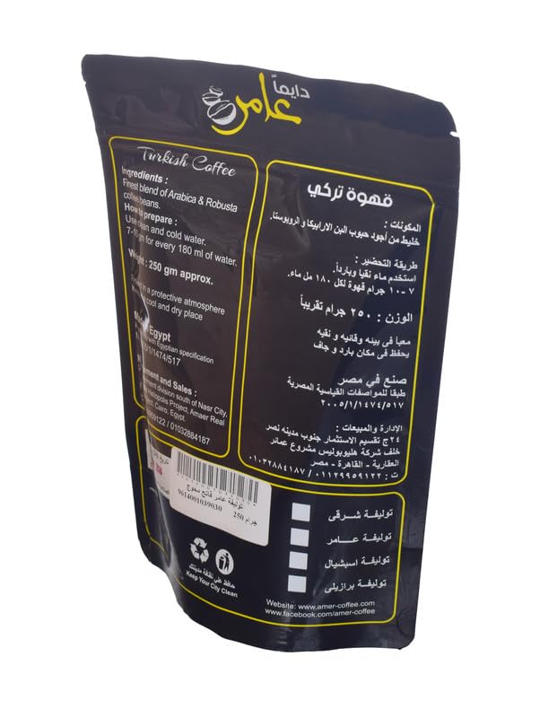 Amer Coffee - قهوة تركية خفيفة بالهيل من بن عامر، 250 جرام - اسود