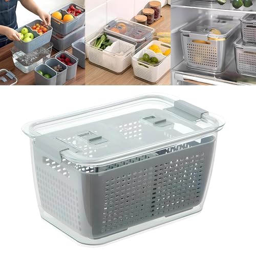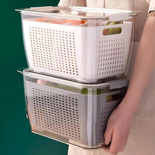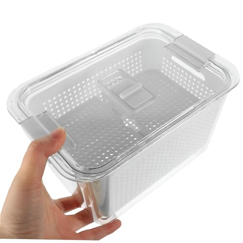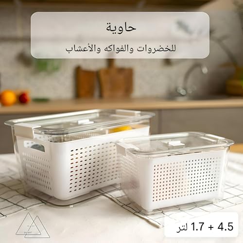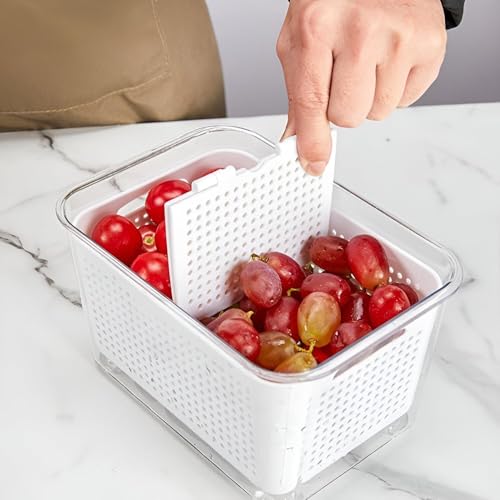 - ليس فقط صندوق تخزين، ولكن هذه العلبة متعددة الأغراض تعمل أيضًا كأداة تنظيف لمنتجاتك الطازجة. يمكنك شطف الفواكه والخضروات داخلها مباشرة، ثم تصريفها وتخزينها، كل ذلك بأقل جهد.