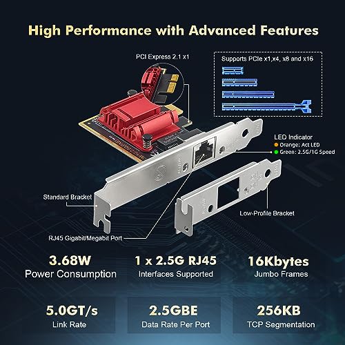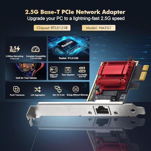 - شبكة 2.5 جيجابايت في الثانية: تصل إلى 2.5 جيجابت مع شريحة ريلتيك RTL8125B، متوافقة مع التفاوض التلقائي 1 جيجابايت في الثانية/100 متر/10 متر، تدعم معيار كات 5e أو يو تي بي أعلى على مسافات تصل إلى 100 متر (328 قدم)