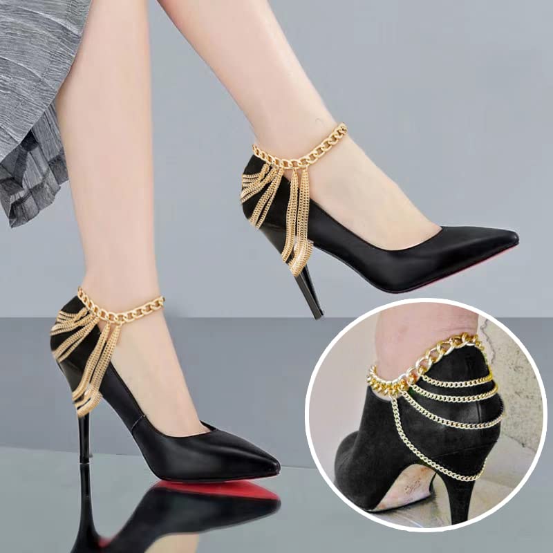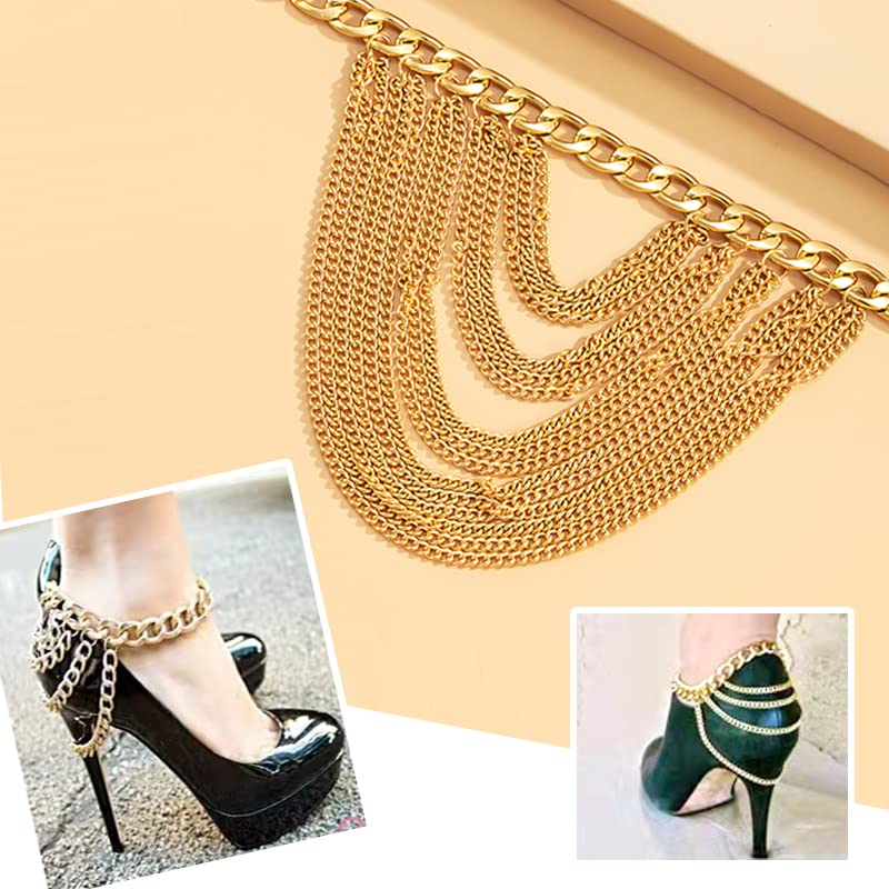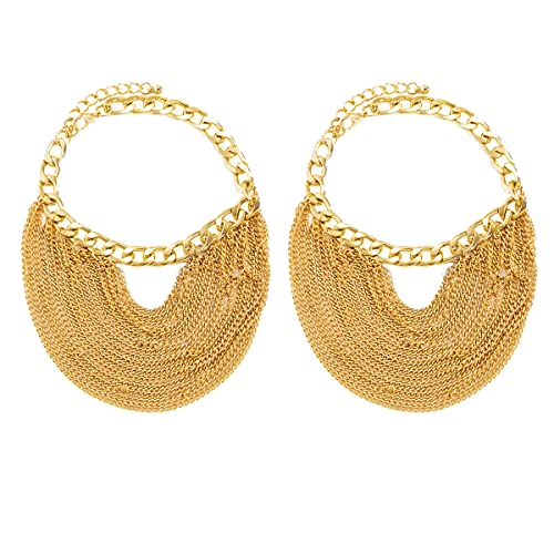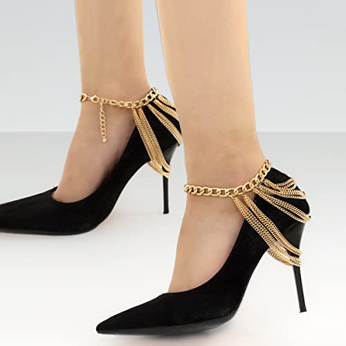 BINERN - اساور خلخال ذهبية بسيطة للنساء من بينرن، خلخال ذهبي متعدد الطبقات بشراشيب للنساء، هدية مجوهرات ذهبية، بدون احجار كريمة، قطعتين