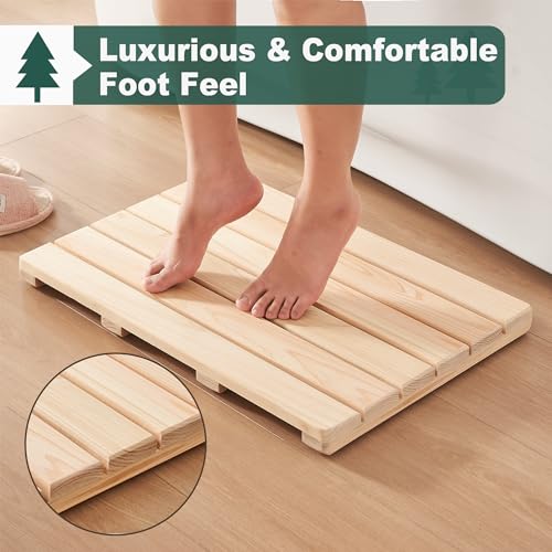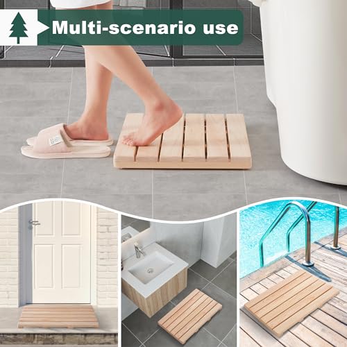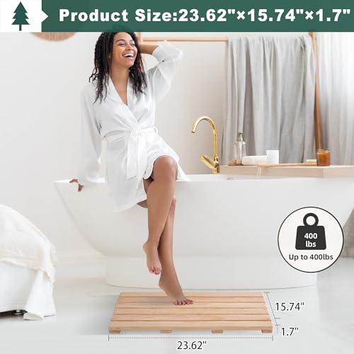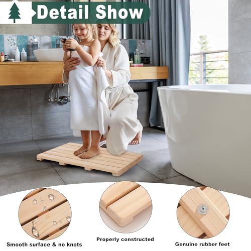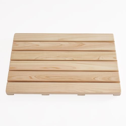 bingaai - سجادة حمام ودش من خشب هينوكي من بينجاي، مقاس 23.62 × 15.75 انش، سجادة حمام من خشب هينوكي ياباني طبيعي، غير قابلة للانزلاق للاستحمام الداخلي والخارجي، سجادة ارضية خشبية للسبا والساونا والتخييم