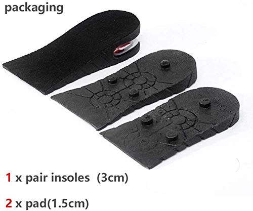 - يتناسب مع معظم أنماط الأحذية - الأحذية الطويلة والأحذية الرياضية وأحذية التدريب وما إلى ذلك. نعل داخلي لزيادة الطول من 3 إلى 8.9 سم حسب نوع الحذاء.