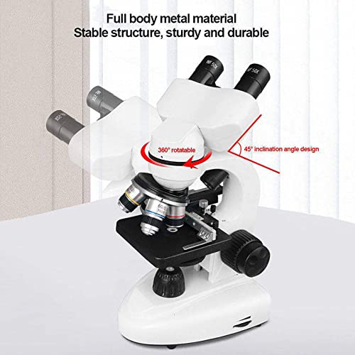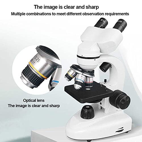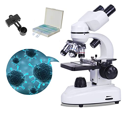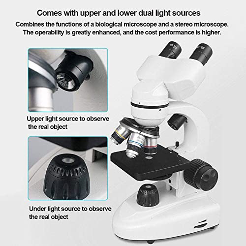 QJJML - ميكروسكوب بيولوجي ثنائي العدسة بإضاءة ليد مزدوجة، ميكروسكوب بصري عالي الوضوح مع 10 عينات مناسب للتجارب العلمية التعليمية للبالغين والطلاب، 20000X