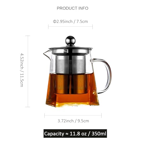 binsakao - إبريق شاي زجاج سعة 350 مل بمصفاة ستانلس ستيل مقاومة للحرارة مثالية للشاي والقهوة