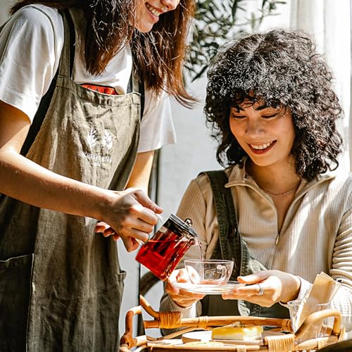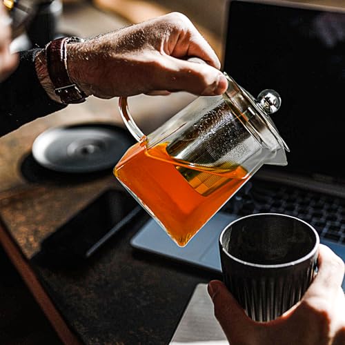- 🍃 تصميم زجاجي أنيق: لا يعرض الهيكل الزجاجي الشفاف لإبريق الشاي اللون الجميل للشاي المخمر فحسب، بل يضيف أيضًا لمسة من الأناقة إلى تجربة شرب الشاي. ويعمل التصميم الأنيق والبسيط على جعله إضافة أنيقة لأي مطبخ أو غرفة طعام. كما أن إبريق الشاي آمن للاستخدام في الميكروويف، والموقد الكهربائي، والفرن، وآمن للغسل في غسالة الأطباق.