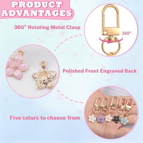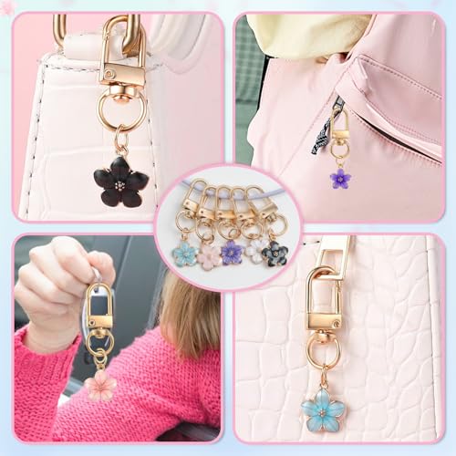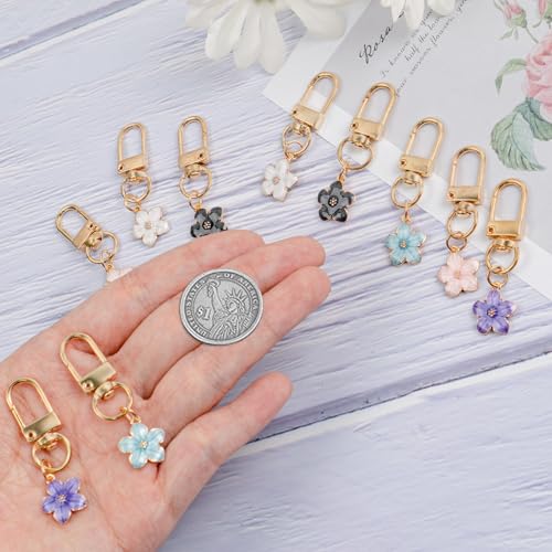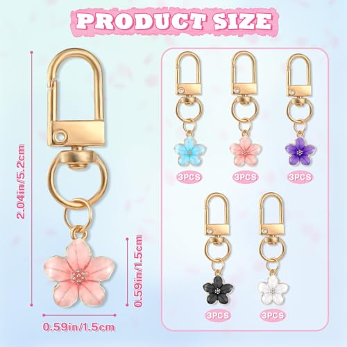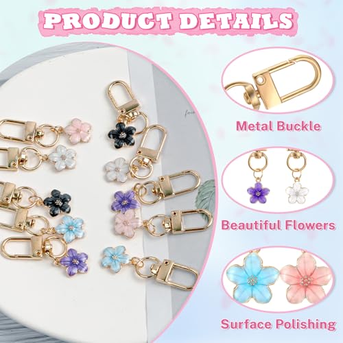 Binxus - سلسلة مفاتيح على شكل زهرة من بينكسوس 15 قطعة، تعليقة حقيبة زهور، دلايات سلسلة مفاتيح جمالية للمحفظة، سلاسل مفاتيح حقيبة الظهر للبنات