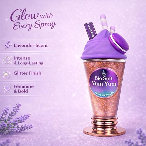 Generic - سبلاش للجسم من بيو سوفت - عطر الجسم يم يم مع لمعان، جليتر لبشرة متوهجة ومشرقة، رائحة منعشة تدوم طويلًا، تصميم ايس كريم، للنساء، 200 مل (لافندر، موديل - BS-IC-7)