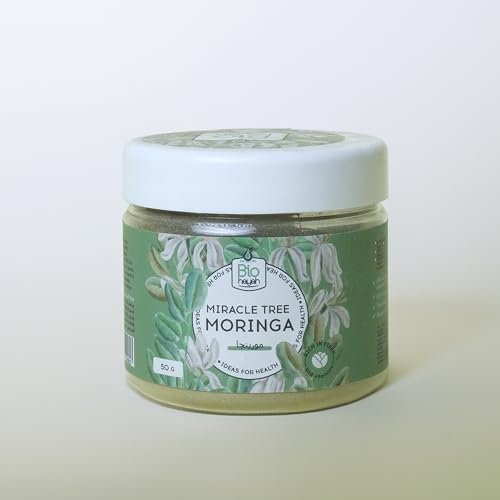 Biohayah - مسحوق المورينجا من بيوهايا، 50 جرام، غير معدل وراثيًا، خام 100%، نباتي وخالٍ من الجلوتين