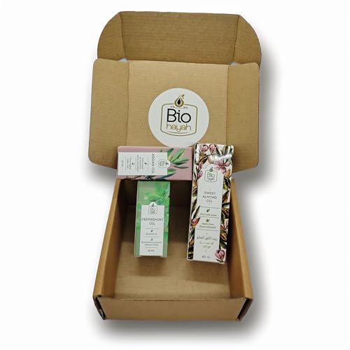 Biohayah - مجموعة ناتشرز فريش من بيوهايا بخلاصة زيوت الأرجان واللوز الحلو والنعناع المضغوطة على البارد، زيوت طبيعية 100% للعناية بالبشرة والشعر
