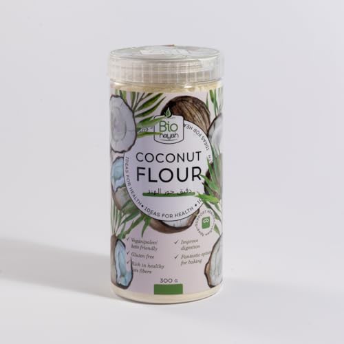 Biohayah - دقيق جوز الهند العضوي - بديل دقيق خال من الغلوتين للكيتو والباليو والخبز النباتي، قليل الدسم - غير معدل وراثيا، غير مكرر 300 جرام