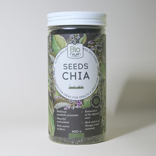 Biohayah - بذور الشيا الخام من بيوهايا، 400 جرام | فاخرة وطبيعية بالكامل | تحتوي على أوميجا 3 والألياف والبروتين | رائعة مع المخفوقات والعصائر