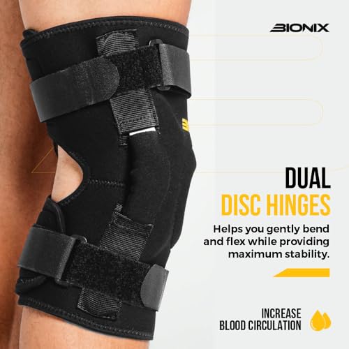 - للتعافي والحماية من آلام الركبة - تتميز دعامة الركبة المفصلية من بيونيكس بمفصلات مزدوجة على كلا الجانبين لمساعدتك على الانحناء والثني بلطف مع توفير أقصى دعم لتثبيت الرضفة ضد أي إصابات في الركبة مثل التهاب المفاصل أو آلام المفاصل أو تلف الرباط الصليبي الأمامي أو تمزق الغضروف المفصلي.