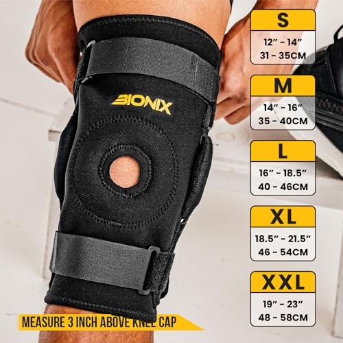 Bionix Professional Support - دعامة لمفصل الركبة مع ثبات ثنائي (نيوبرين) للساق اليسرى واليمنى، للوقاية من الإصابات والتعافي منها، بضغط حراري، دعامة الرضفة المفتوحة (مقاس لارج L)