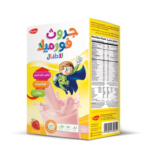 Biophe - مكمل غذائي جروث فورميلا بنكهة الفراولة للأطفال من عمر 1 إلى 12 سنة من بيوفي، 400 جم