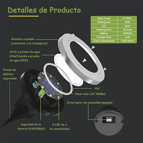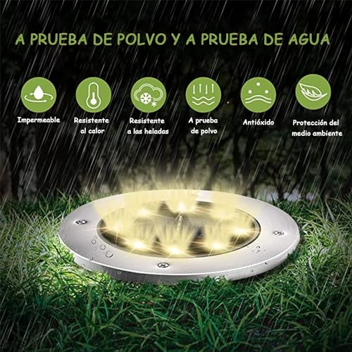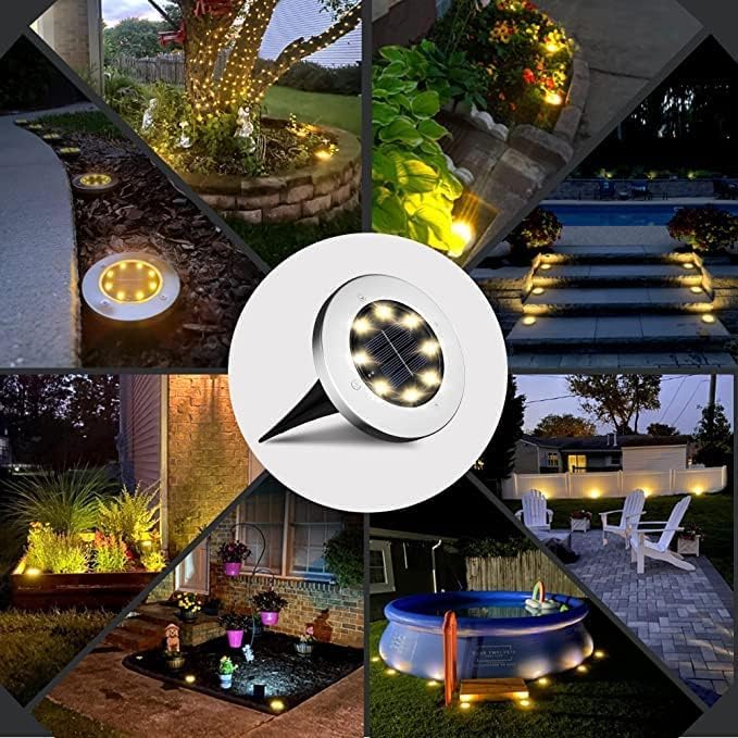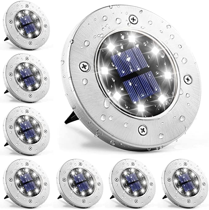 - 【مصابيح شحن بالطاقة الشمسية】مصابيح قرص تعمل بالطاقة الشمسية مطورة مع بطارية مدمجة قابلة لإعادة الشحن بسعة كبيرة 600 مللي امبير في الساعة، تحتاج فقط إلى 6-8 ساعات ليتم شحنها بالكامل ويمكن أن تدوم من 8 إلى 10 ساعات من وقت العمل. مجهزة بـ 8 مصابيح LED عالية الطاقة ولوحة شمسية أوسع، نطاق الإضاءة والتأثير أكبر وأكثر إشراقًا..