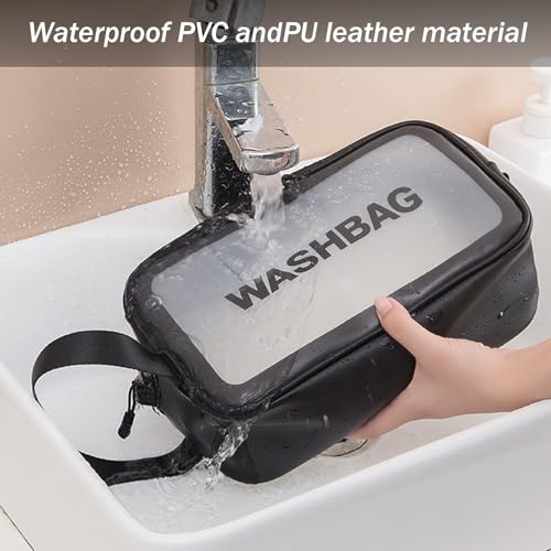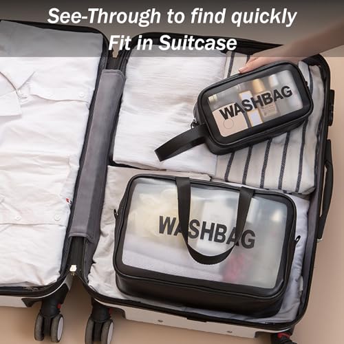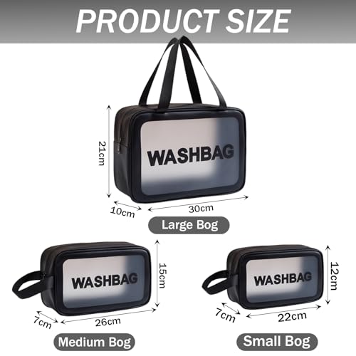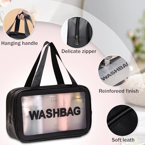 BIRDDIE - حقائب سفر شفافة من بيردي، 3 عبوات من حقائب أدوات الزينة، حقيبة مستحضرات تجميل شفافة غير لامعة، حقيبة مكياج مع مقبض عملي، حقيبة سفر، منظم مستحضرات التجميل لمستلزمات السفر (اسود)