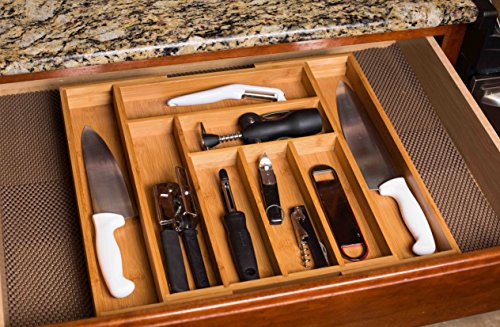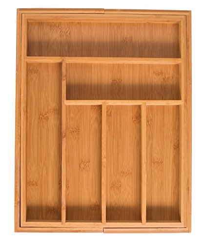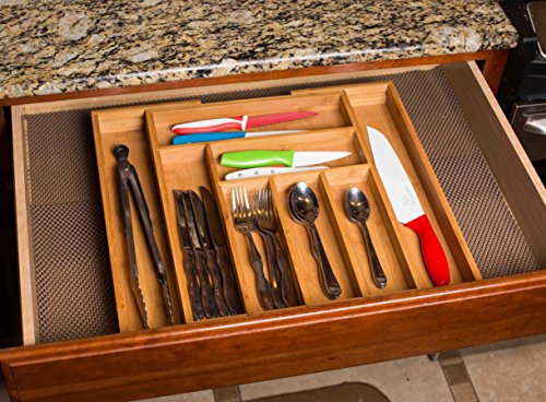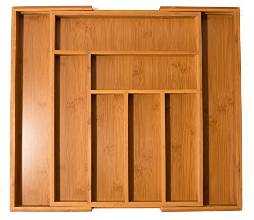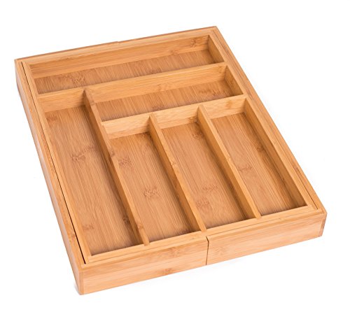 - تتضمن درج خيزران قابل للتوسيع ويناسب معظم أدراج المطبخ وأدراج المكتب.