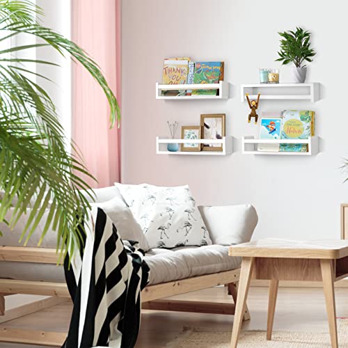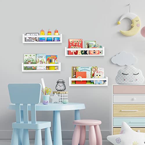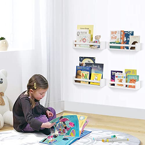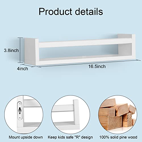 birola - مجموعة رفوف كتب لغرفة الأطفال من بيرولا جدارية للأطفال معلقة كلاسيكية بيضاء احضانة ديكور حضانة سفاري 4 قطع لون أبيض مطلي خشب صنوبر
