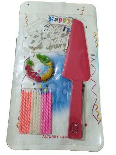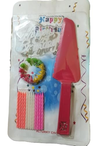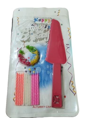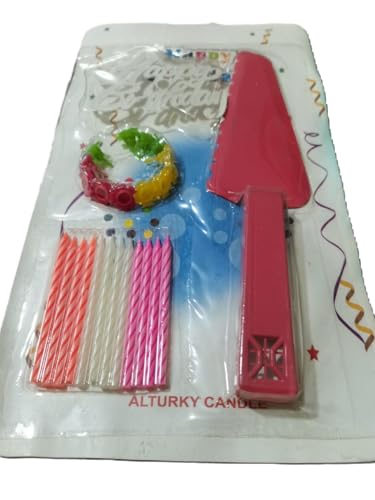 Generic - مجموعة شموع عيد الميلاد مع حاملات الشموع وسكين كيك