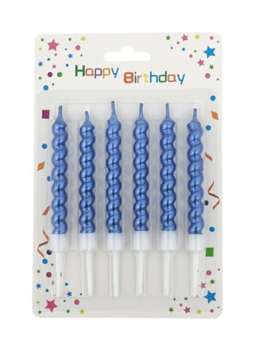 Generic - شموع عيد الميلاد، حلزونية معدنية زرقاء، 6 قطع، لتزيين الكيك