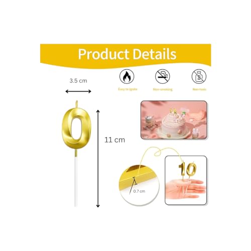 Generic - شموع عيد ميلاد للكيك، شموع أرقام ذهبية لتزيين حفلات الأطفال، شموع أرقام لتزيين كعكة عيد ميلاد سعيد للحفلات للأطفال والكبار. (رقم 0)