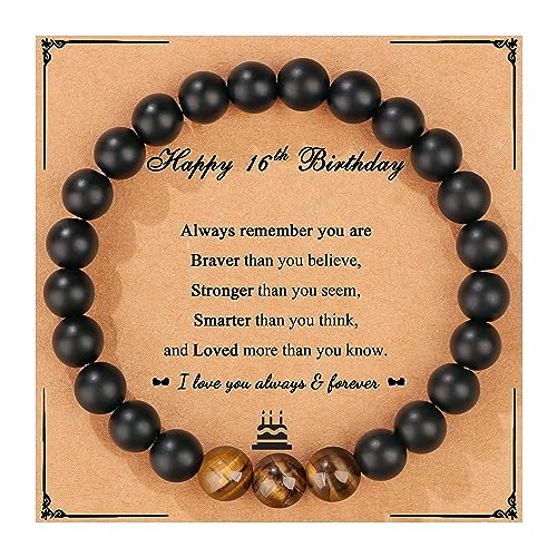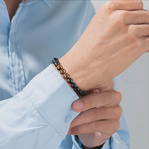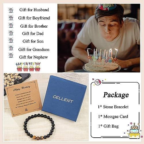 CELLENT - سوار مرن للرجال مناسب كهدية عيد ميلاد للرجال، سوار عين النمر الطبيعي 16 و18 و20 و21 و30 و40 و50 و60 و70 و80، هدايا فريدة للأب والابن والحفيد والعم وابن الأخ والجد