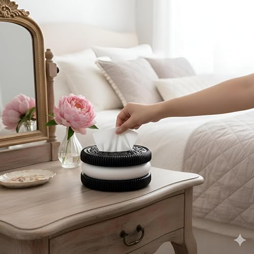 - يتميز صندوق المناديل هذا بتصميم فريد مستوحى من البسكويت، يحاكي الملمس المبهج والحواف التفصيلية لبسكويت الساندويتش الكلاسيكي، مما يضيف لمسة مرحة وغريبة إلى أي غرفة - مثالي لغرف المعيشة أو غرف النوم أو المكاتب المنزلية.