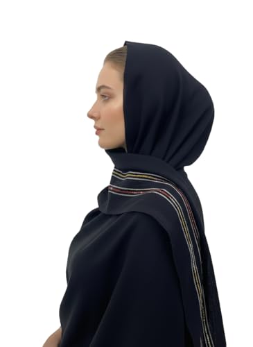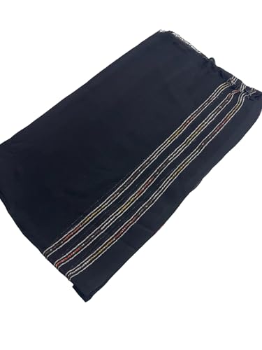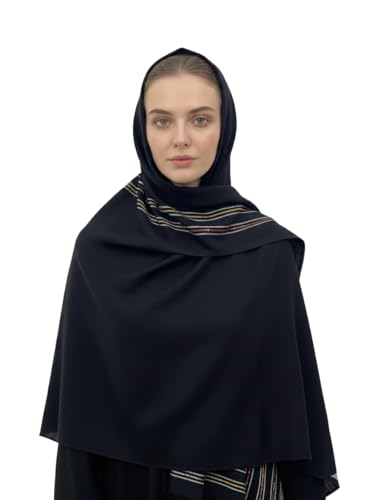 بيشة - سكارف حجاب كتان فاخر للنساء من بيشا Pish-94-8665-km-black 1، 75×180 سم - اسود