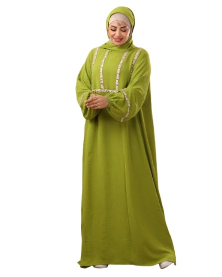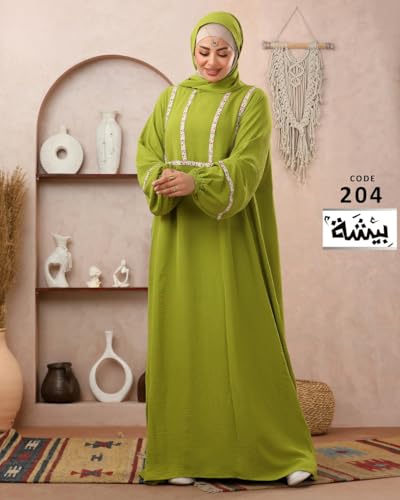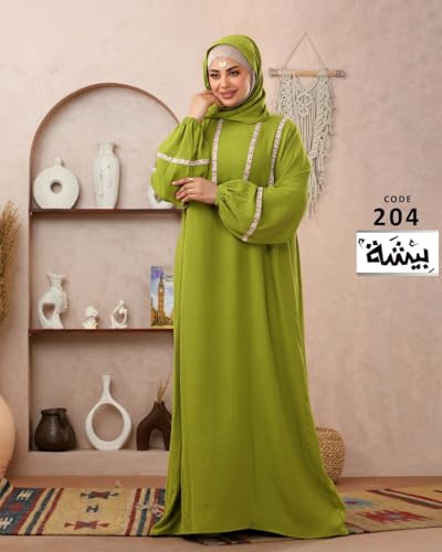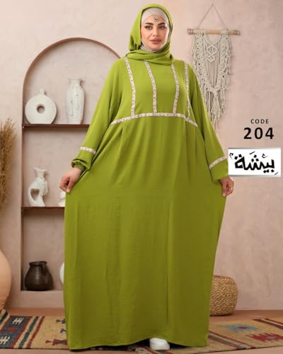 بيشة - عباية محتشمة للنساء من بيشة مع حجاب، رويال، اكمام طويلة، تفاصيل حواف مطرزة، مقاس كبير يصل الى 90 كجم - 204