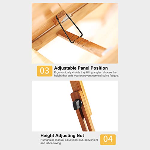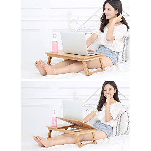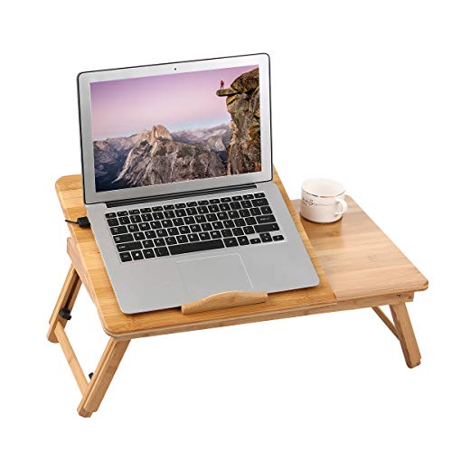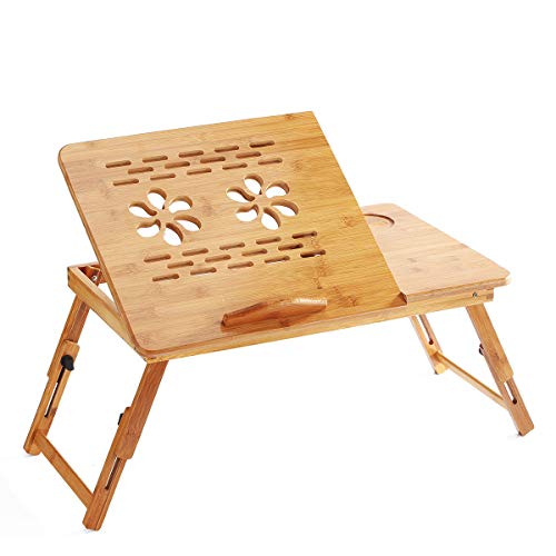 Bisofice - طاولة سرير لجهاز اللاب توب بتصميم قابل للطي من الخيزران، صينية سرير لتقديم الفطار، طاولة بارتفاع قابل للتعديل مع درج علوي قابل للإمالة بـ 4 زوايا من بيسوفيس
