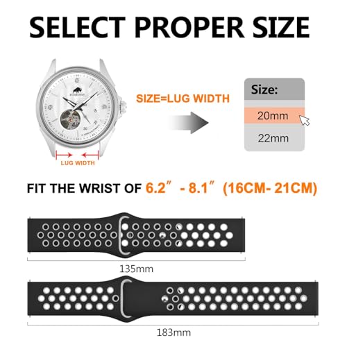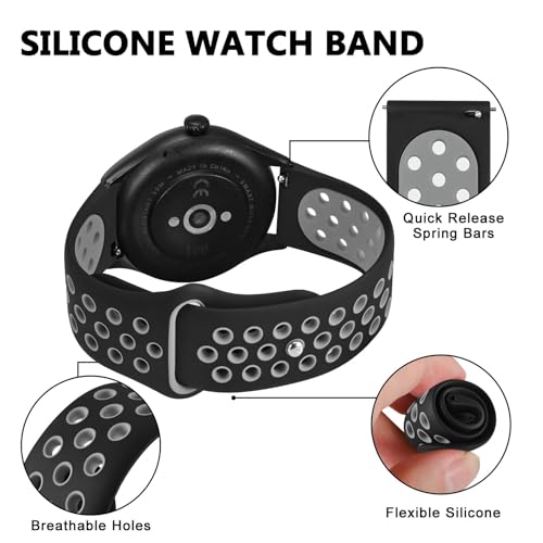BISONSTRAP - سوار 20 ملم 22 ملم للرجال والنساء من بايسون ستراب، سوار ساعة سيليكون جيد التهوية، سوار بديل رياضي سريع الفك