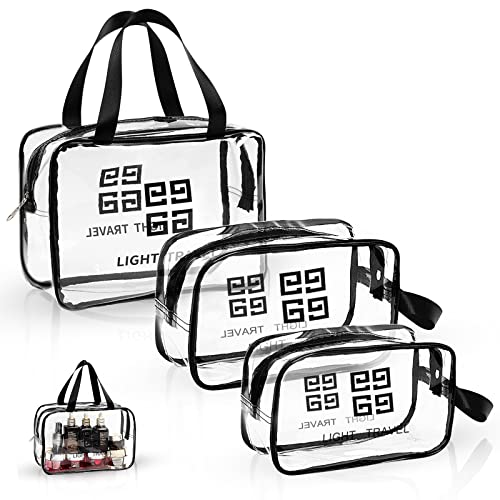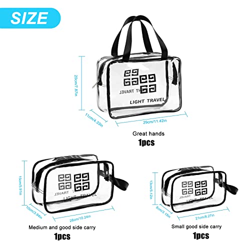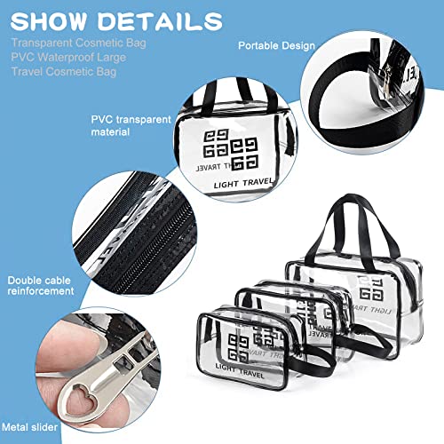 BITEFU - مجموعة من 3 شنط شفافة لادوات الزينة من بيتيفو، شنطة مستحضرات تجميل للسفر، مصنوعة من بلاستيك PVC مقاومة للماء ومتينة تصنعها بنفسك (مقاس S، M، L، شفافة)