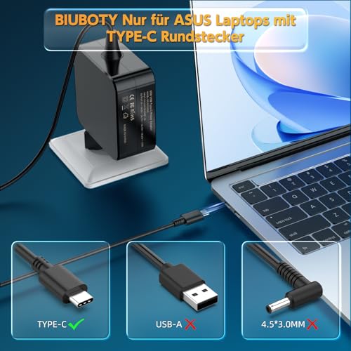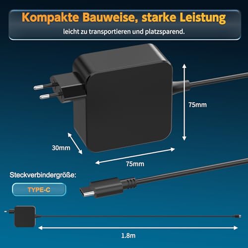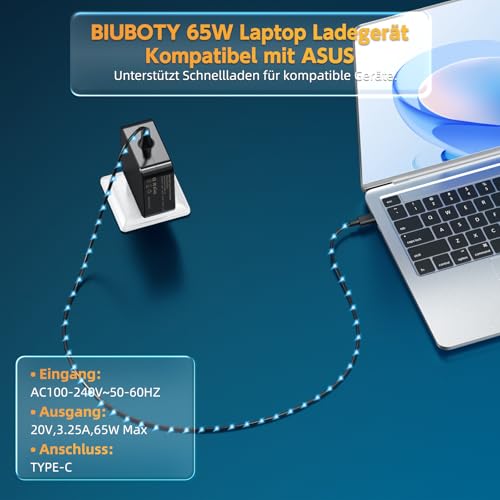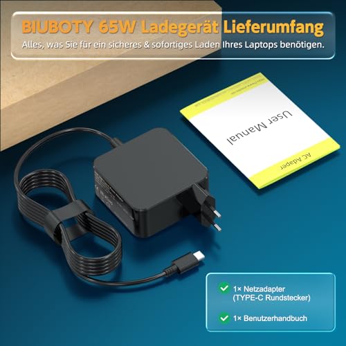 BIUBOTY - محول طاقة USB C بقدرة 65 واط شاحن لابتوب لينوفو يوجا 720 910 C740 C930 ثينك باد X1 كربون الجيل الخامس/الجيل السادس/الجيل السابع T480 T580 E480 E580 ماك بوك برو اتش بي اسوس ايسر هواوي أسود عدد 1