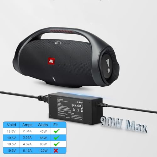 BIYTC - شاحن من جيه بي ال بكابل طاقة التيار المتردد، متوافق مع سماعات بومبوكس وباور سبلاي اكستريم، بقوة 90 وات