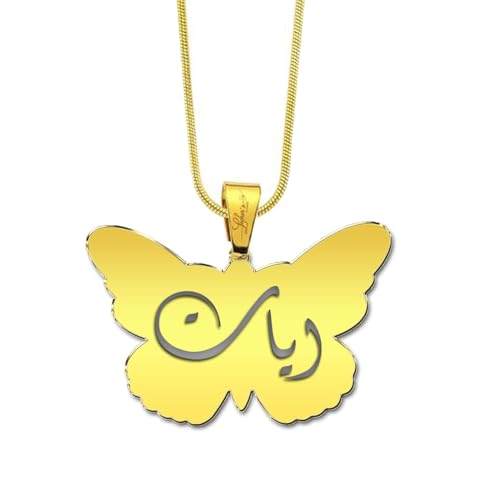 BJS - سلسلة وقلادة اسم ايات شكل الفراشة دهب صينى ، للنساء