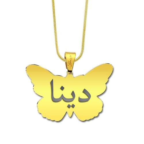 BJS - عقد بدلاية اسم دينا على شكل فراشة مطلية بالذهب من بي جيه اس