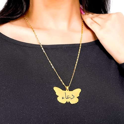 BJS - سلسلة بدلاية على شكل فراشة بطلاء ذهبي تحمل اسم دعاء من بي جيه اس