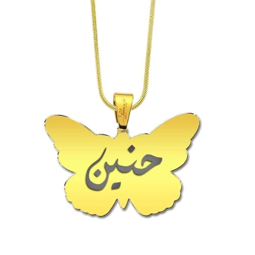 BJS - قلادة مطلية بالذهب على شكل فراشة تحمل اسم حنين من بي جيه اس للنساء