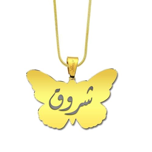 BJS - سلسلة مطلية بالذهب على شكل فراشة مزينة باسم شروق من بي جيه اس