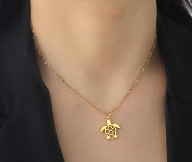 BJS - سلسلة بدلاية على شكل سلحفاة اللون الذهبي من بي جيه اس - لمسة نهائية البحر للنساء