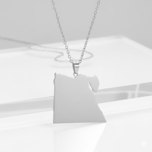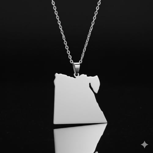 BJS - قلادة خريطة مصر استالس مطلى بالفضه من بى جى اس