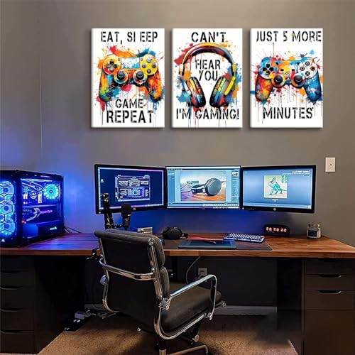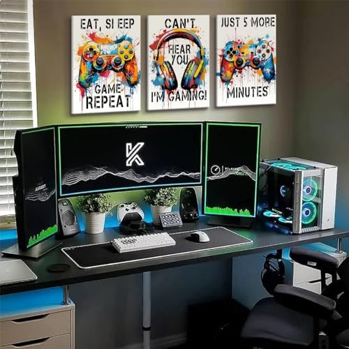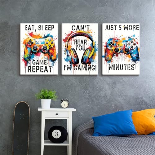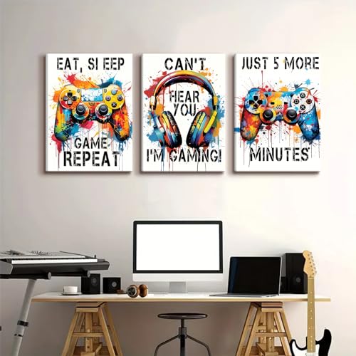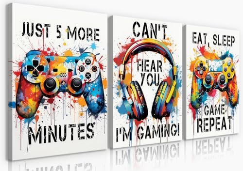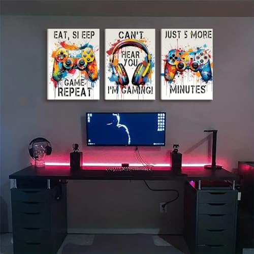 BJVJKSU - بوسترات العاب الفيديو من بي جيه في كيه اس يو، لوحة فنية ملونة قماش النيون لتزيين الحائط وغرفة الالعاب اللعب النوم وصور جرافيتي (12 × 16 انش)