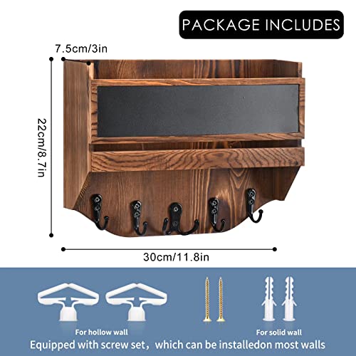 BKCOYSJ - حامل خشبي للمفاتيح والبريد من بي كيه سي او واي اس جيه مع 6 خطافات وسبورة طباشير منظم بريد يثبت على الحائط مركز قيادة مكتب العائلة منبككويسج 33.0 رطل 33.0