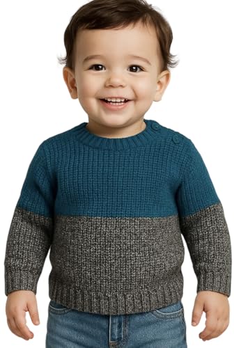 Generic - سويتر منسوج للاطفال من بي ال نورد بلون ازرق ورمادي مضلع ورقبة دائرية ضيقة، لعمر 18 شهر