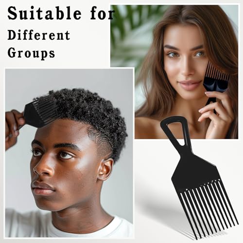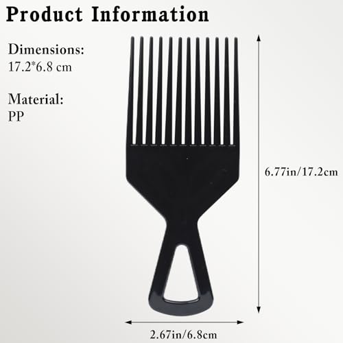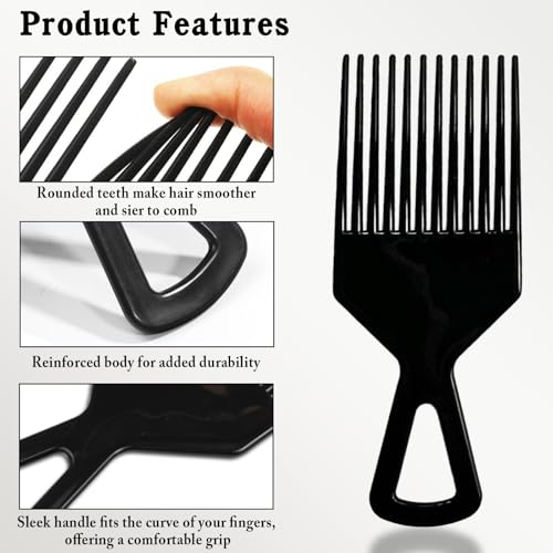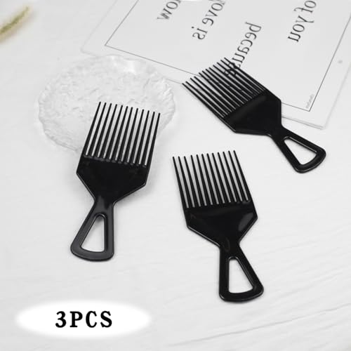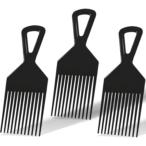 Zoolinn - مشط الشعر افرو بأسنان واسعة وقوية لتصفيف وفك تشابك الشعر للرجال والنساء، لون أسود، عبوة من 3 قطع
