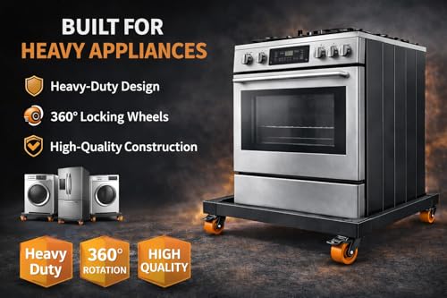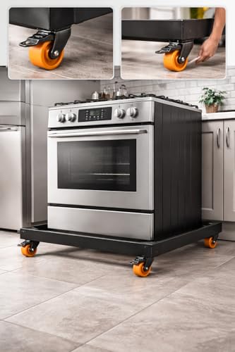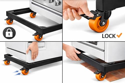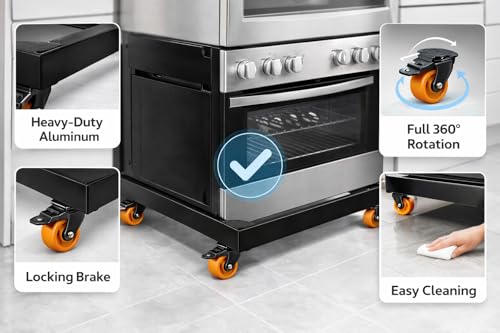 Generic - قاعدة بوتاجاز ألومنيوم سوداء 60×90 سم – 4 عجلات قوية بفرامل أمان – مقاومة للصدأ – قاعدة متحركة للأجهزة الثقيلة